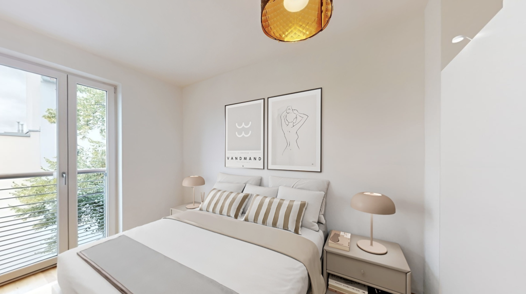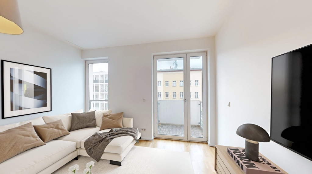 In der oberen Etage des Vorderhauses liegt diese architektonisch reizvolle und außergewöhnliche Wohnung. Der Balkon bietet einen weitblick über den Kiez und ist nach südosten ausgerichtet. Die Wohnung ist mit einer hochwertigen Maß-Einbauküche ausgestattet. Das moderne Quartier besteht aus einem Vorderhaus, einem Seitenflügel und einem Gartenhaus. Im Untergeschoss des Vorderhauses befinden sich Abstellräume für jede Wohnung.