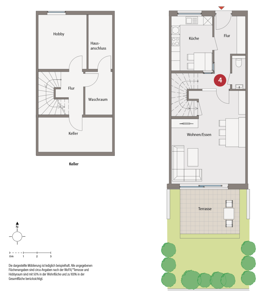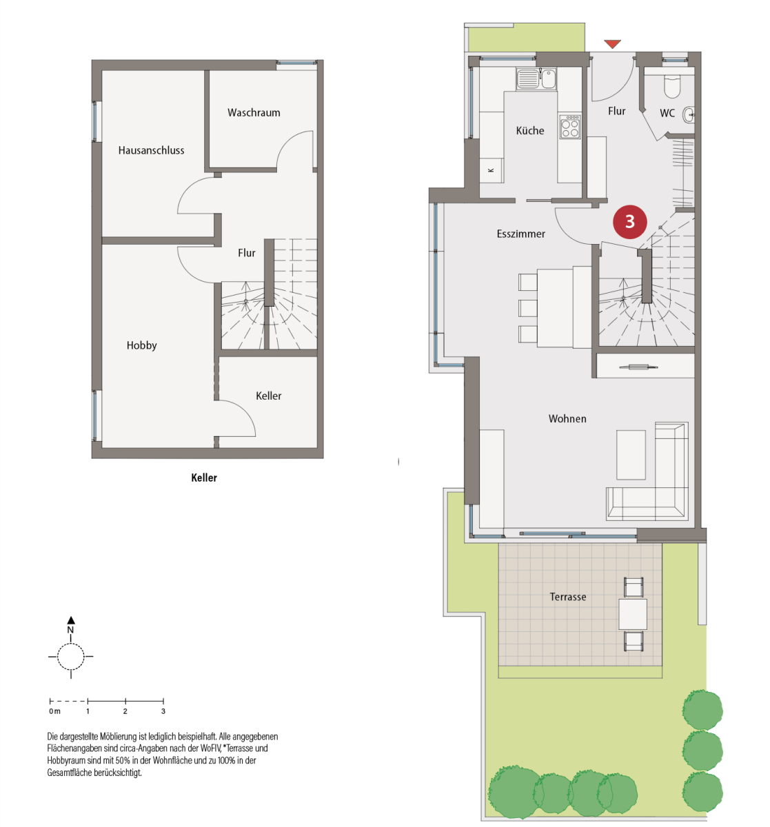 In dem Dreispänner stehen noch ein Reihen-Eckhaus mit ca. 155 m² Wohnfläche und ein Reihen-Mittelhaus mit ca. 145 m² Wohnfläche zum Verkauf.
